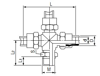 • 标记示例: ①:锁母式三通终端管接头 公称通径 Ø6MM JSM-3T-Z6 M10×1