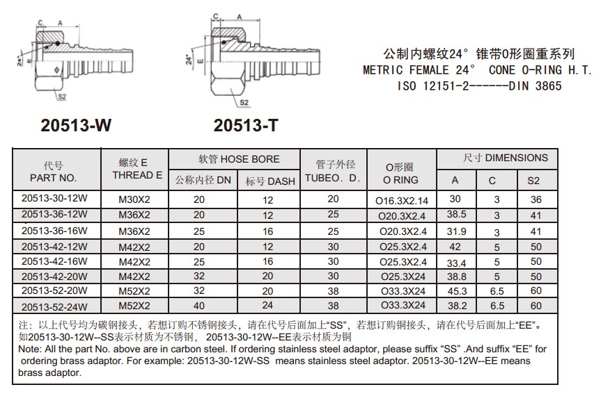20513-W 公制内螺纹24°锥带O形圈重系列