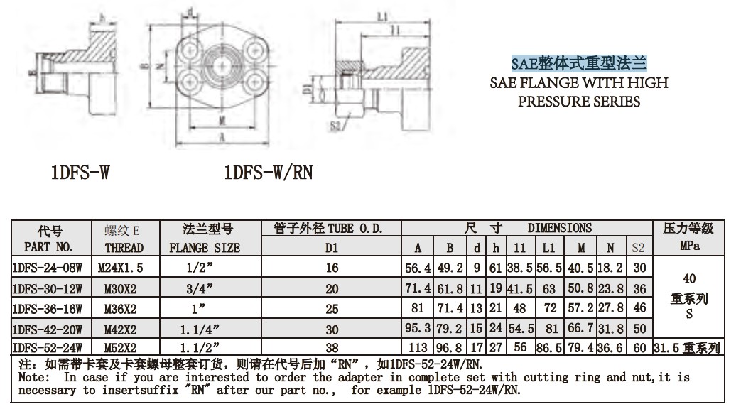 1DFS-W 1DFS-W/RN SAE整体式重型法兰